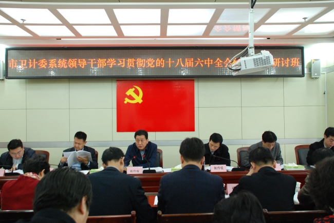 3月9日,市卫计委举办学习贯彻党的十八届六中全会精神专题研讨班。学习传达习近平总书记在省部级主要领导干部学习贯彻党的十八届六中全会精神专题研讨班上的重要讲话精神和在甘肃视察时“八个着力”指示要求,以及全市党政主要领导干部学习贯彻党的十八届六中全会精神专题研讨班精神。